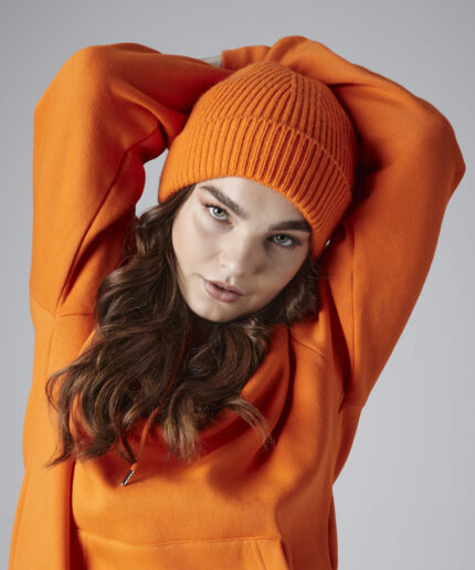 Engineered knit ribbed beanie