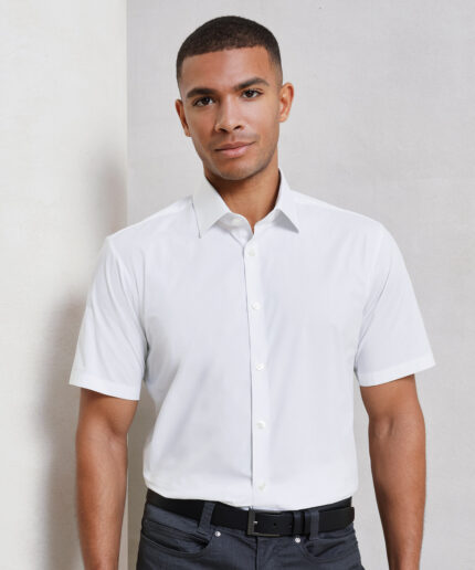 Stretch fit cotton poplin short sleeve shirt