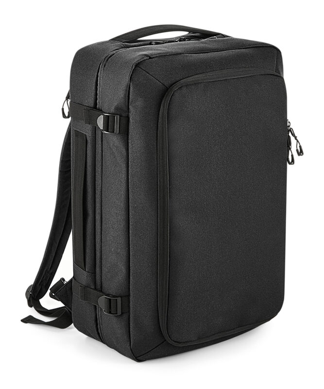 TearAway label for ease of rebranding. Convenient dual compartment design for easy packing. Padded laptop sleeve compatible up to 15.6". Lockable main compartment zip. Quick access zippered top pocket. Large zippered front compartment with internal mesh divider. Zippered internal pocket. Dual compression straps. Padded top and side handles. Foldaway backpack shoulder straps aircraft cabin compatible - suitable for most airlines. Can be further customised with BG485 Escape handle wrap.