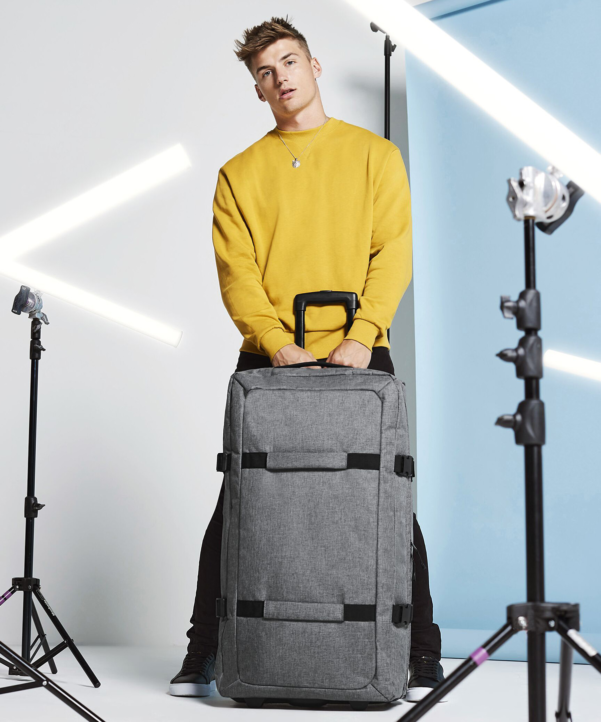 TearAway label for ease of rebranding. Convenient dual compartment design for easy packing. Lockable main compartment zip. External identification window. Removable Rip-Strip™ handle wraps for ease of decoration. Dual compression straps. High stability retractable twin-handle. Durable front grab handles. Padded top and side handles. Durable integrated skate wheels. Can be further customised with BG485 Escape handle wrap.