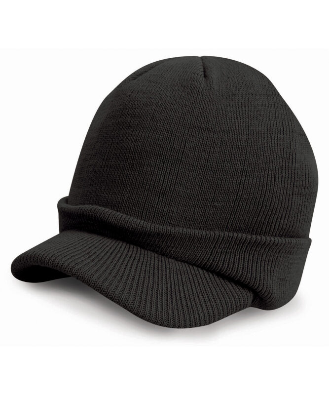 Heavy weight super style Esco knitted hat, with fashionable pre-curved peak also available in junior size.