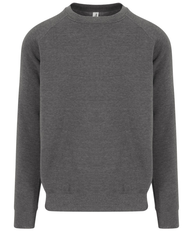 Heavyweight sweat. Twin-needle stitching detail. Raglan sleeves. 2 x 1 ribbed cuffs and hem. Soft cotton faced fabric creates ideal printing surface. Simple tear-out label makes it perfect for rebranding. Brushed inner fleece.