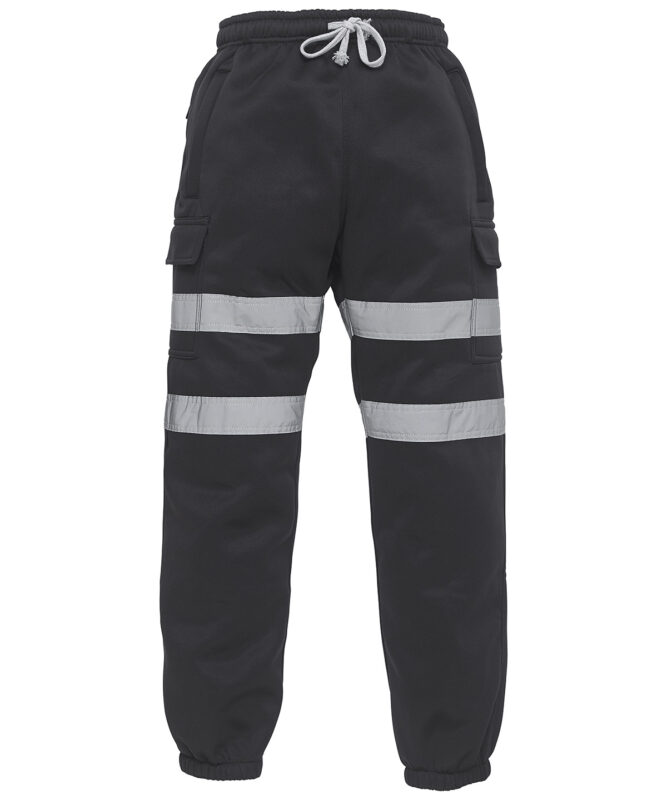 Hi Vis Yellow and Orange conforms to EN ISO 20471 Class 1 and Orange is also RIS-3279-TOM Railway use certified. Black and Navy provide enhanced visibility. Made of 280 gsm water-repellent anti-pill single jersey knitted soft-feel polyester fabric. Fully elasticated waist with well-made drawcord. Two 5cm width retro reflective tapes bands higher up to the mid thigh. Cargo pocket with hook and loop fastening flap on both legs. Two Hip pockets with zip closure. One rear patch pocket with hook and loop fastening flap. Elasticated ankles. Comfortable to wear allowing maximum movement without restriction.