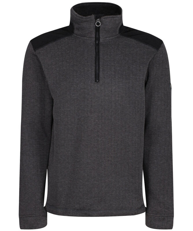 The Holbeck half-zip fleece from Regatta Professional. With strategic overlays and warming jacquard fleece fabric, it features a herringbone-effect to keep you cosy and on trend. The country vibe makes it perfect for working on country estate or farm, while the corduroy shoulder adds to the style and elbow overlay panels provide lasting wear.