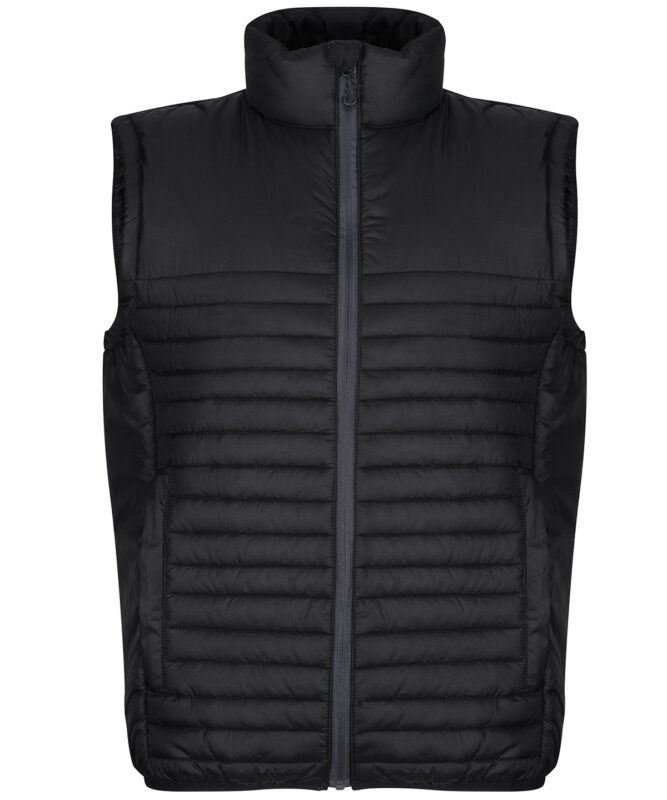 100% Recycled polyester interest face fabric with water-repellent cire finish. Recycled Thermoguard 160gsm insulation, and recycled polyester lining. Stretch binding to hem. 2 zipped lower pockets. Easily compressible. .