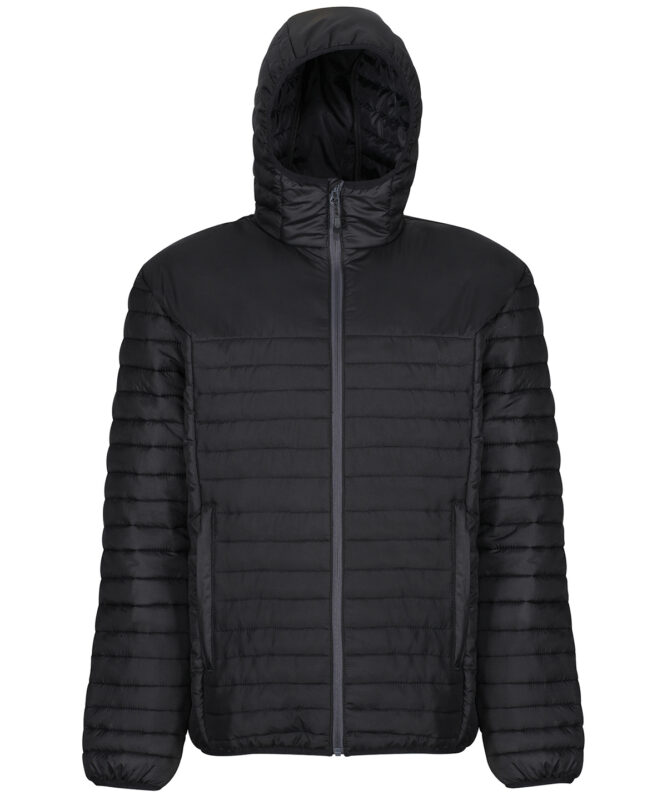 100% Recycled polyester interest face fabric with water-repellent cire finish. Recycled Thermoguard 180gsm insulation, and recycled polyester lining. Stretch binding to cuffs, hood and hem. 2 zipped lower pockets. Easily compressible.