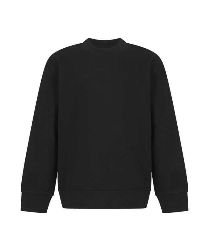 Unisex relaxed fit sweatshirt. Set-in sleeves, dropped shoulders. Droptail hem – curved high front, low back. Ribbed hem cuffs and crew neck. Single Jersey back neck tape and facing. Tonal topstitching detail. Brand-free, for easy rebranding. Contains recycled cotton and recycled polyester.