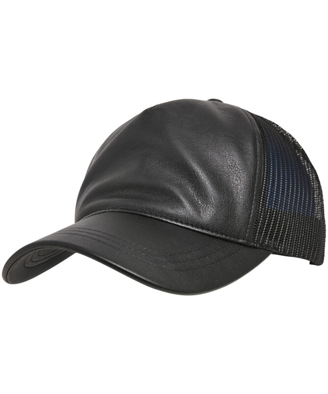 Leather meets mesh – and born is the leather trucker cap! Prepare yourself for a very special accessory that boosts streetwear style and upgrades your wardrobe with originality. The front features a soft leather look and is underlined by a pre-bent visor with decorative seams. The back is made of traditional trucker cap mesh. Naturally, a perfect fit is guaranteed by an easy to use closure on the back. Skilfully striking a pose can be so easy, so don’t be shy!