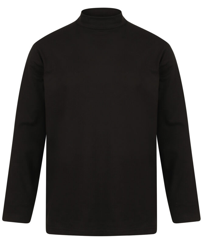 Cotton rich with double thickness rib roll neck. Reinforced shoulders and neck. Twin-needle stitching. Hemmed cuffs.