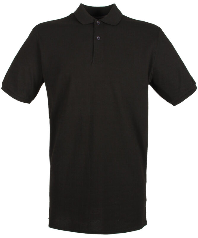 Modern-fit in a lightweight micro-fine piqué with a short point collar, fitted sleeve and cuffs for a modern and fresh new look. Micro-fine piqué is ideal for printing. 2 Button placket, Dyed to match buttons. Contrast herringbone tape in back neck and side vents. Henbury Cut-out back neck brand label.