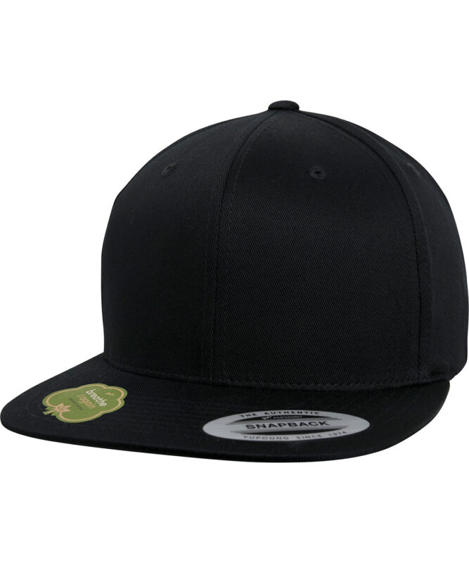 Organic cotton snapback. Pure organic cotton. Popular snapback shape. Reinforced front flat visor. Easy to adjust snapback closure.