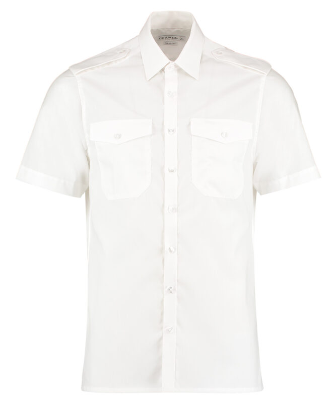Fused stand-up collar. Easy iron. Doubled-stitched side and sleeve seams. Two chest pockets with button down flaps. Pen holder left side pocket as worn. Button down epaulettes to shoulders. Single needle stitched yoke and armholes. Single-stitched straight hem and cuffs. Kustom Kit® woven back neck label.