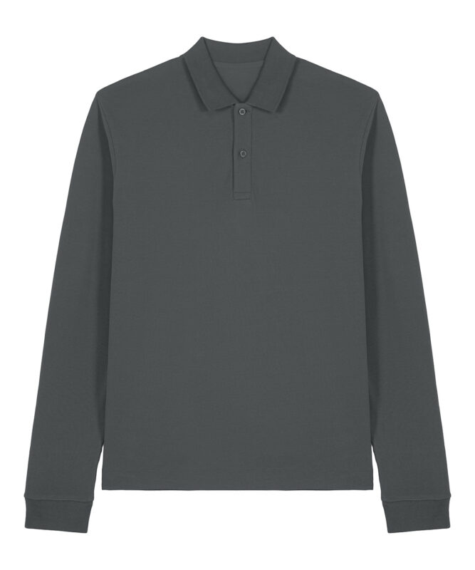 Premium, unisex, long-sleeve polo shirt in 100% organic cotton. Modern, medium fit, 240gsm. Pre-washed for shrink resistance. Excellent printability.