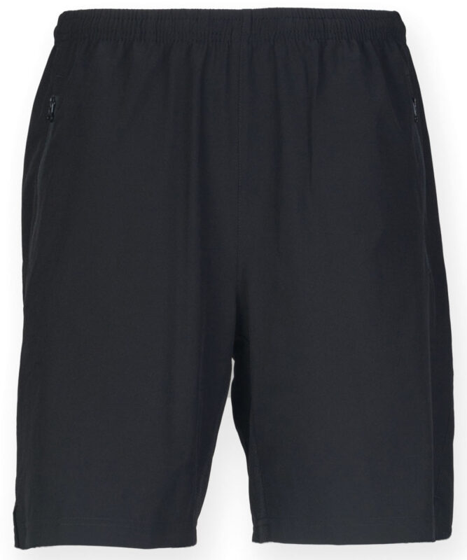 4 way stretch fabric shorts, fully elasticated waistband with inner drawcord, zip up pocket, DTM crotch panel, unlined.