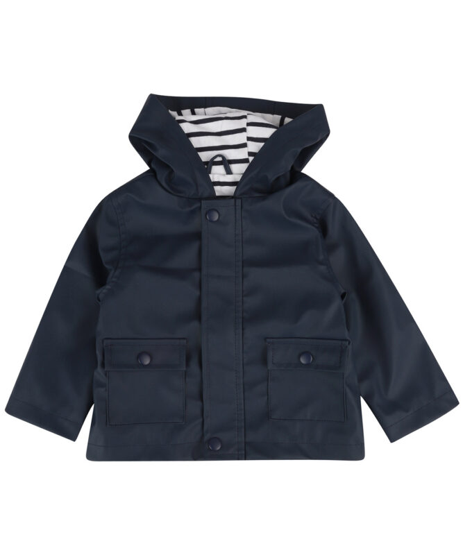 For the puddle jumpers, try the rain jacket with charming striped single Jersey lining and available in bright colours.