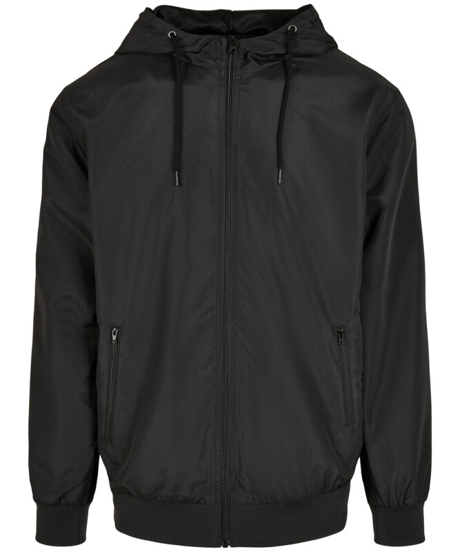 Casual and functional basic windbreaker for men made of 37% recycled polyester - perfect for refinement. Classic cut with ribbed hem and sleeves, a hood with mesh lining and a full-length zipper. Thanks to the insert in the back and the lining hem with zipper, the piece can easily be refined using various techniques.
