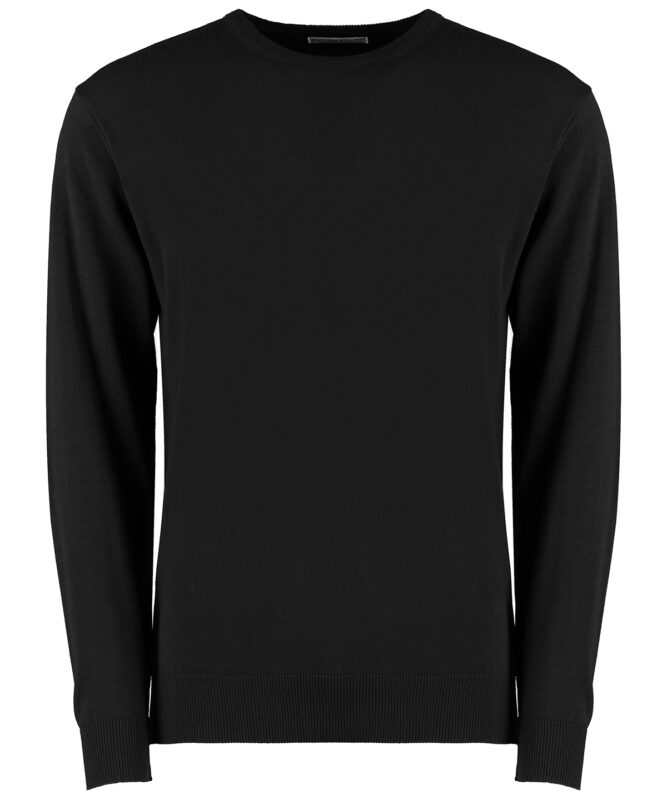 12 gauge knit. Fashioning marks to front neck, sleeve head and armhole. 1x1 ribbed crew neck, cuff and welt. Kustom Kit® woven back neck label.