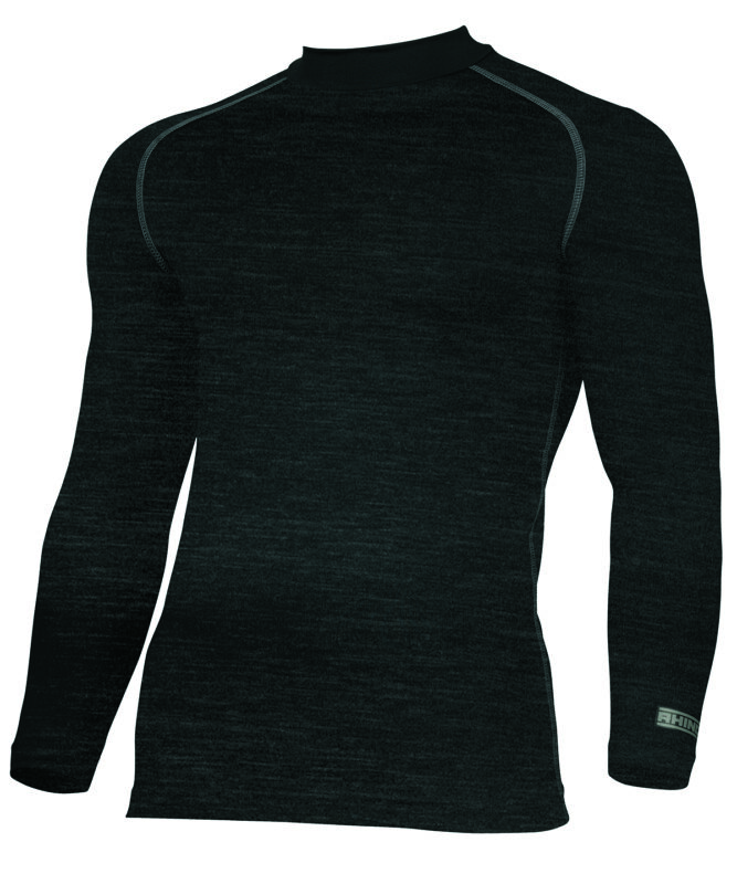 Long sleeve turtleneck. The turtleneck can be personalised with a logo or text. Rhino logo to the rear of the turtleneck. Keeps you warm and dry in cold conditions. Fabric is lightweight, soft, easycare and dries quickly. Fits like a second skin. Regulates temperature of the body. Raglan sleeve design allows increased mobility and a full range of motion. Suitable for all sports (including football, rugby, hockey, golf, cricket, winter sports, cycling and equestrian), and work.