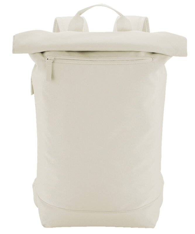 Contains 100% certified recycled polyester. Water-repellent fabric. Minimalist styling. Magnetic roll-top closure. Water-repellent coating. Padded laptop/tablet compartment compatible up to 11". External bottle pocket. Zipped side pocket for bottle/umbrella. Exterior zipped front pocket for easy decoration. Internal pockets. Internal slip pocket. Padded air mesh back panel. PU, self-coloured zip pulls. Rear luggage strap. Padded, adjustable mesh shoulder straps. TearAway label for ease of rebranding.