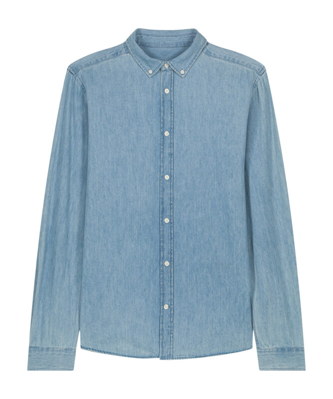 The Stanley denim shirt, for men, is a timeless wardrobe essential that can be layered over a t-shirt or tank top for a laid-back look, or worn alone. This medium-fit denim shirt features a button-down collar, reinforcing the relaxed look. Made from sturdy 235gsm indigo-dyed denim, it offers a durable, eco-friendly choice for anyone who prioritises sustainable men’s fashion. It’s been designed without a back pleat to maximise decoration possibilities, making it an excellent choice for customisation.