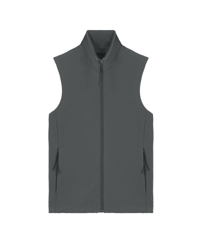 Premium men’s sleeveless softshell jacket. 315gsm stretch fabric with recycled TPU membrane and inside fleece layer. Water-repellent, breathable and windproof.