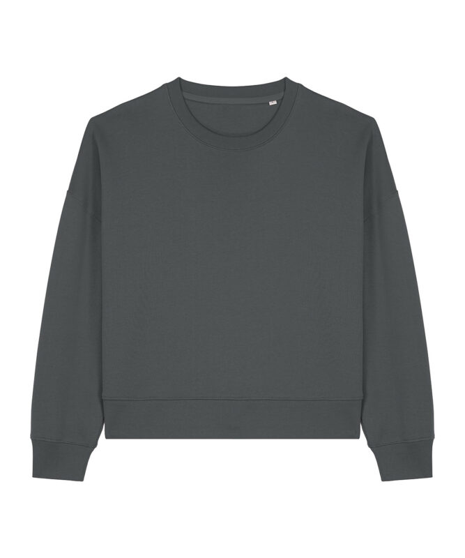 Premium women’s crew neck sweatshirt in brushed 100% organic cotton, 300gsm. Dropped shoulders, adjusted length. Broad colour choice. Excellent printability.