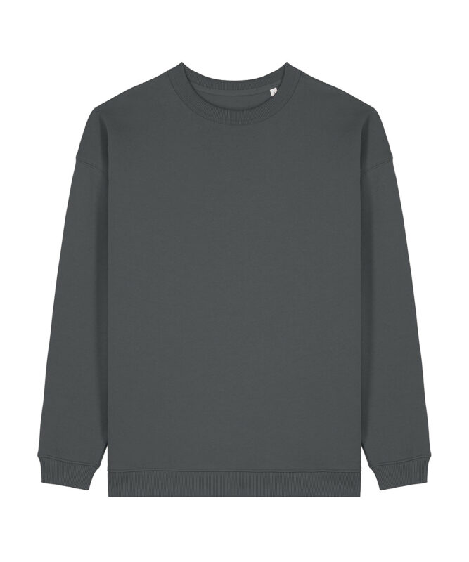 Premium oversized women’s crew neck sweatshirt in brushed 100% organic cotton, 300gsm. Dropped shoulders, ‘boyfriend’ style. Excellent printability.