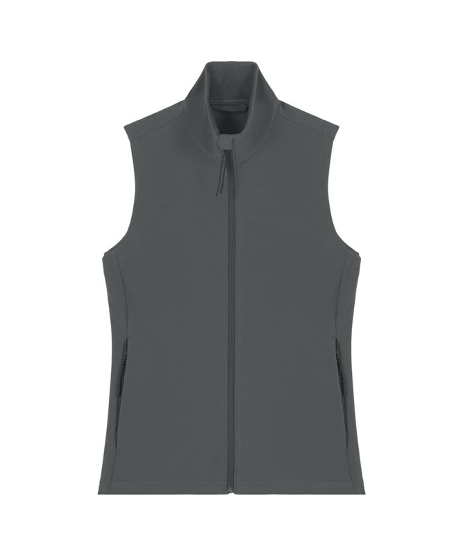 Premium women’s sleeveless softshell jacket. 315gsm stretch fabric with recycled TPU membrane and inside fleece layer. Water-repellent, breathable and windproof.