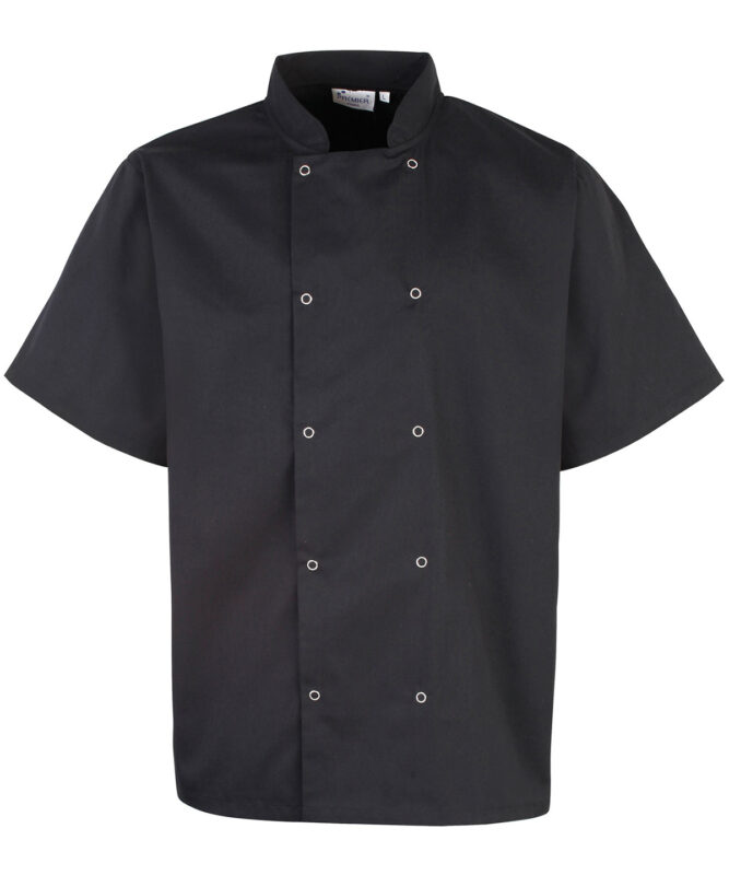 Studded front short sleeve chef’s jacket