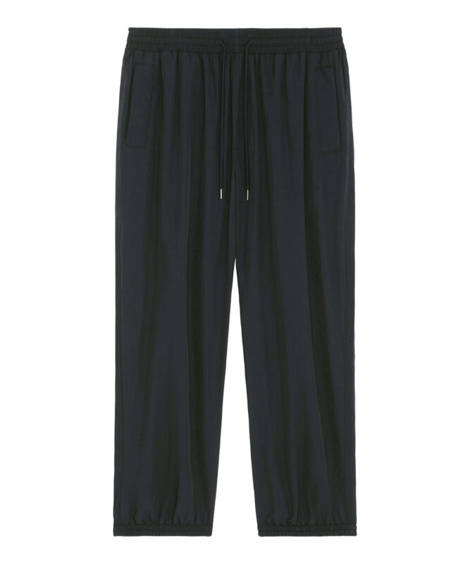 Elastic waist with adjustable drawstring. Reversed, zipped welt pockets with extra grosgrain pull. Round drawcords at the waist in matching body colour with metal tipping. Elastic at leg cuff.