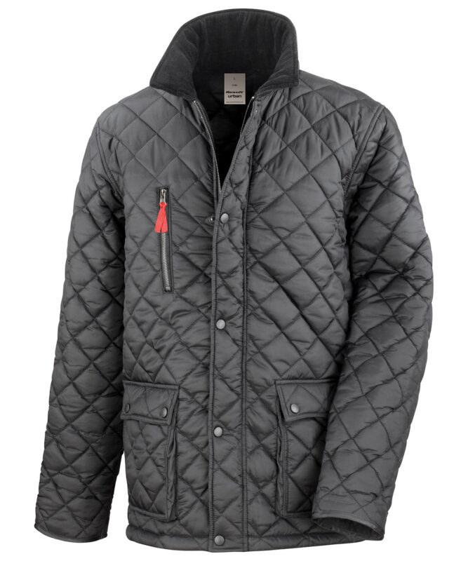 Corduroy collar. Stud front external storm flap. Heavy front 2-way zip. Stud closing patch pocket with handwarmer sides. Zipped external chest pocket. 2 x 2 diamond stitching. Sandwich quilted fleece lining. Rear studded saddle vents. Back panel detail. Hangtag. Fashionable quilted design. Classic styling with contemporary fit. Substantial weight and soft handle. Quiet to wear. Water repellent and windproof.Decoration Guidelines:Decorating methods: Embroidery. Decorators access point: Inside back panel. Oeko-Tex certified.