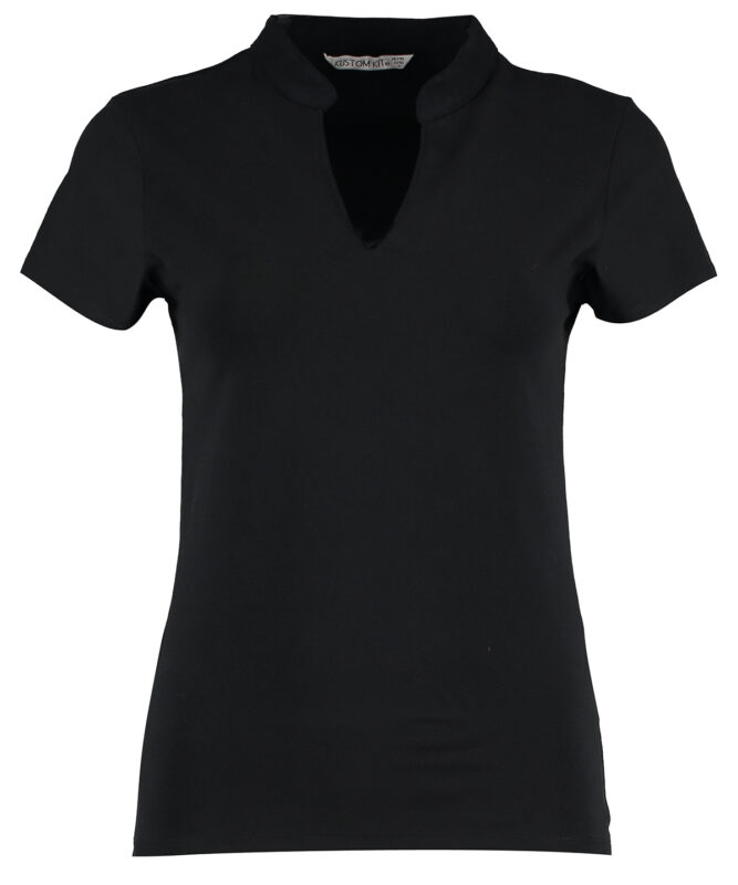 Women’s corporate short-sleeved top v-neck mandarin collar (regular fit)