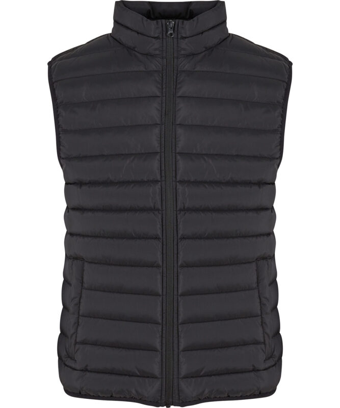 Lightweight design for effortless layering. Features a sleek stand collar style. Regular fit ensures a comfortable wear. Timeless, sleeveless silhouette for versatility. Simple, solid pattern for classic appeal. 100% Certified recycled polyester.
