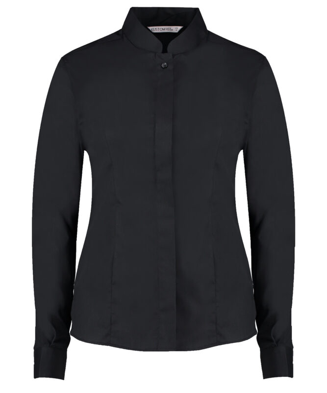 This women’s long sleeved shirt has a mandarin collar and concealed placket. Making it ideal for a vast range of businesses.