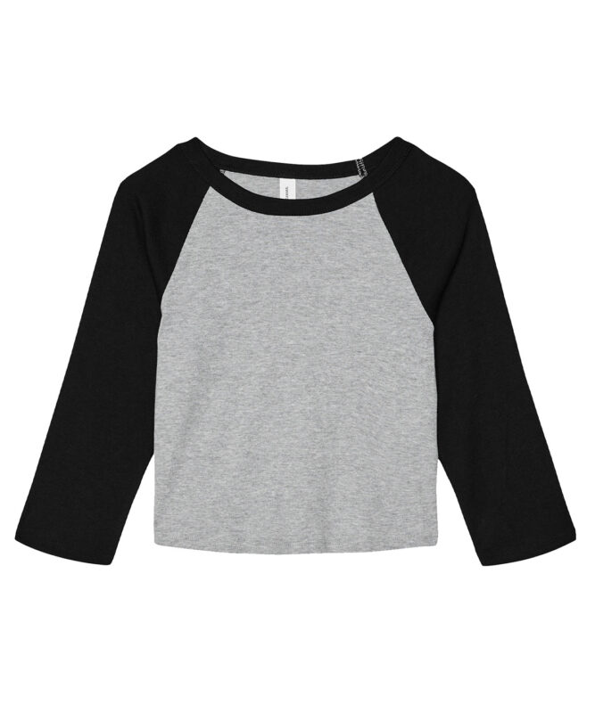 It’s a home run. The iconic baseball 3/4 sleeve tee just made it to the big leagues with the game-changing softness of 1×1 micro rib, a silhouette-flattering fit and a versatile mid-length hem. This must-have style features classic contrast raglan sleeves and crew neck binding, making it a star player.