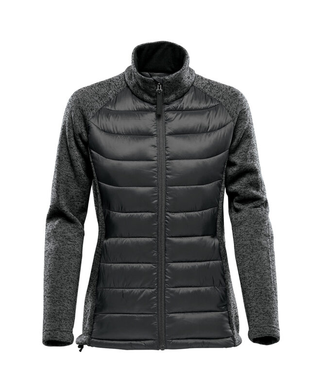 Ultra-lightweight, with maximum thermal efficiency, the Women’s Narvik hybrid jacket isolates and contains heat in damp, cold environments with a lightweight quilted body, bonded knit collar and sleeves. A durable, PFC-free, water-repellent finish on the main body helps to repel water in damp conditions, while the chin saver and adjustable hem with drawcord allow adjustment for maximum comfort during hikes or in outdoor/indoor working environments.