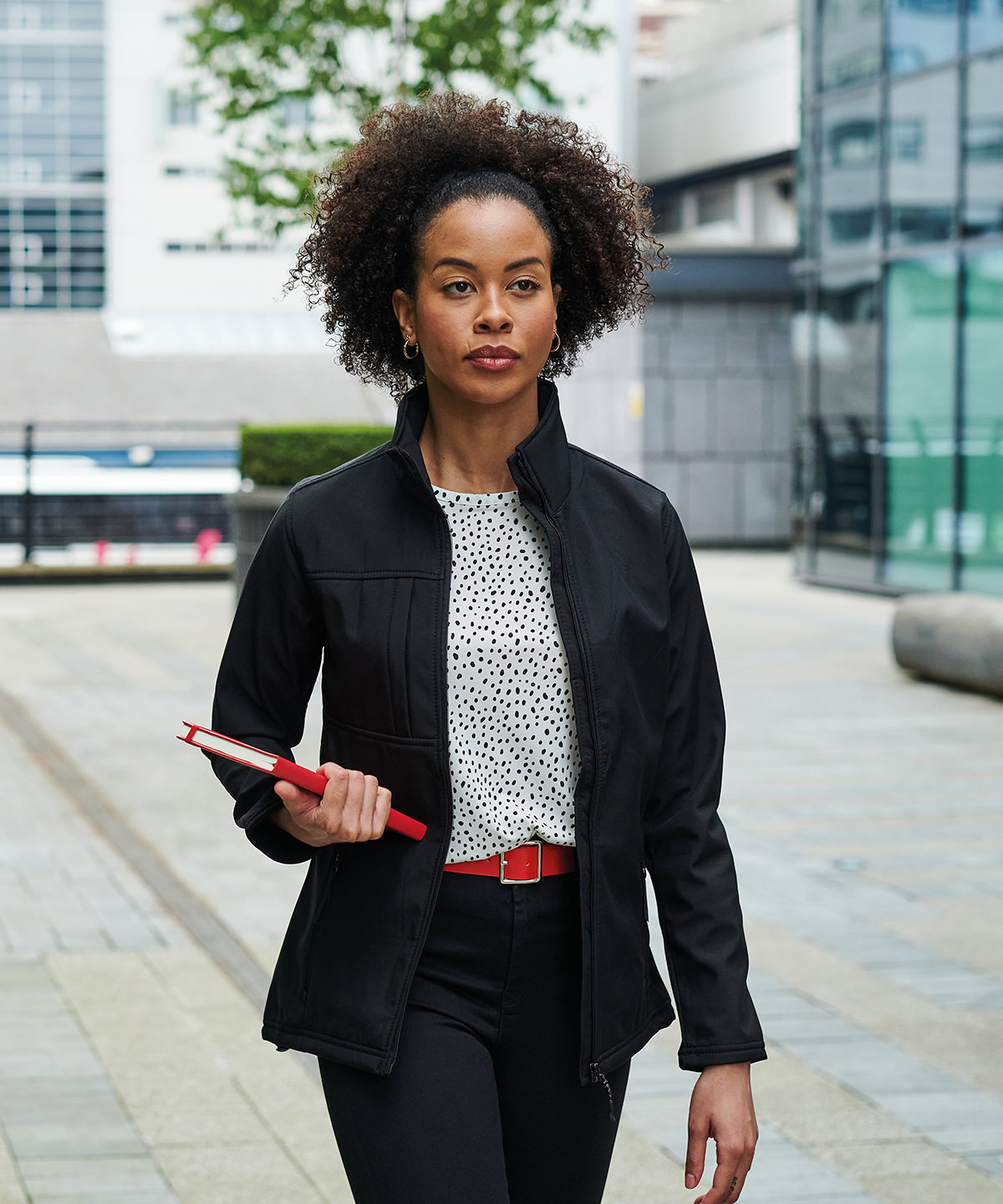 The Octagon softshell is smart, stylish and compact. The warm-backed softshell comes with a natural stretch for agility and a 3-layer membrane for true breathability. The waterproof and windproof finish prepares you for adverse weather and the 300gsm weight gives a secure feel. Two zipped pockets provide the perfect practicality. The women’s softshell can be personalised via embroidery, vinyl, screen printing or transfer.