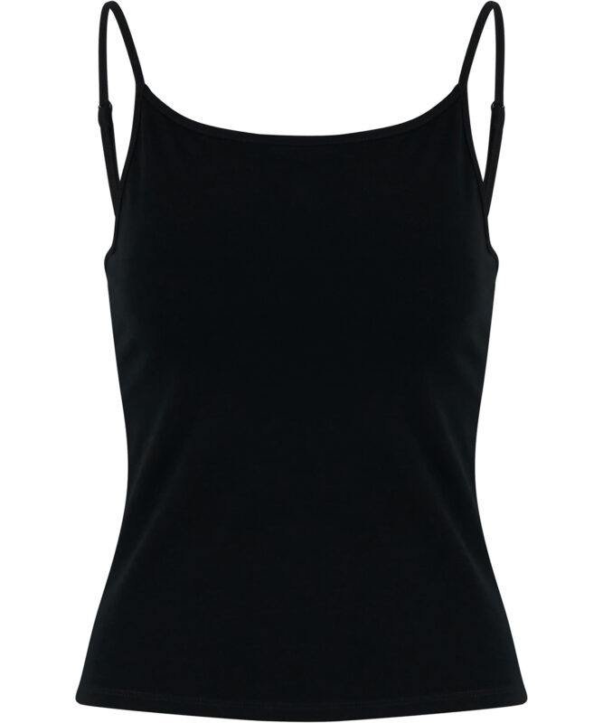 Sleek, sleeveless design for modern style. Comfortable stretch Jersey ensures easy wear. Versatile top with a regular fit. Strap neckline adds a chic touch. Perfect short length for layering options.