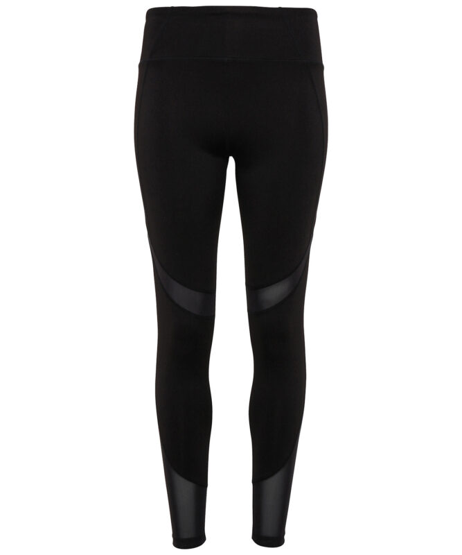 Full-length leggings in block colour. Mesh panels on calf. Elasticated waist band. Mesh panels on thigh. Stretchy. Coin pocket on inside. We recommend using block out vinyl and inks.Product contains no branded neck or waist label. Removable Kimble or looped garment tags. Inner seam label holds important product information on one label with a second label containing brand information which can be cut-away.