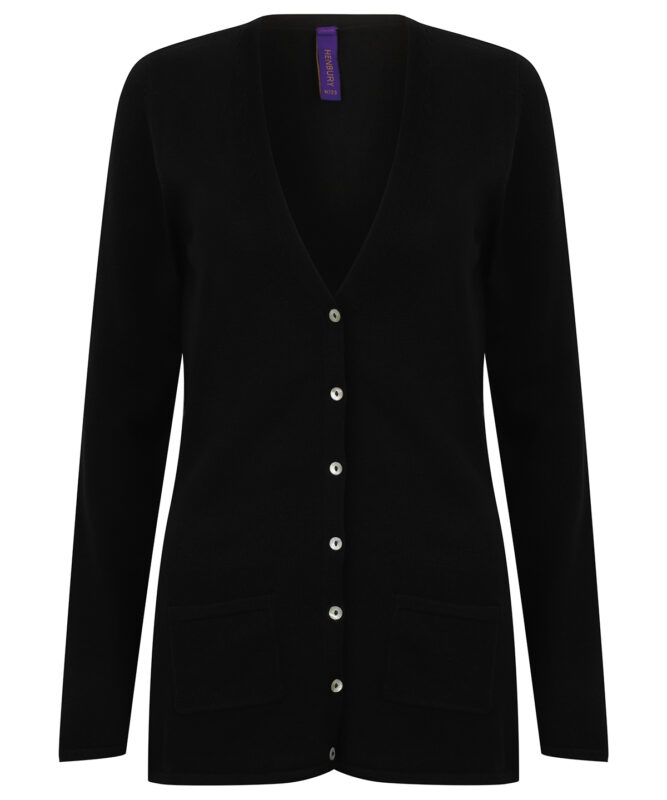 This V-button cardigan offers a modern style long cardigan with pearlized buttons in a quality fine knit made to perform. This style is part of our 50 cotton/50 acrylic range where you can mix and match your styles.