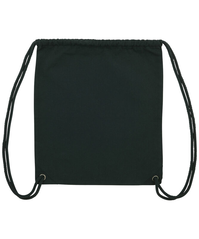 Top edge double folded for strength and clean finish. Reinforcing bar tack at tunnel openings. Heavy drawcord straps with knot at ends. Gun metal eyelets and drawcord tipping. Reinforcing triangles at bottom corners. Unisex. 80% recycled cotton, 20% recycled polyester. Canvas.