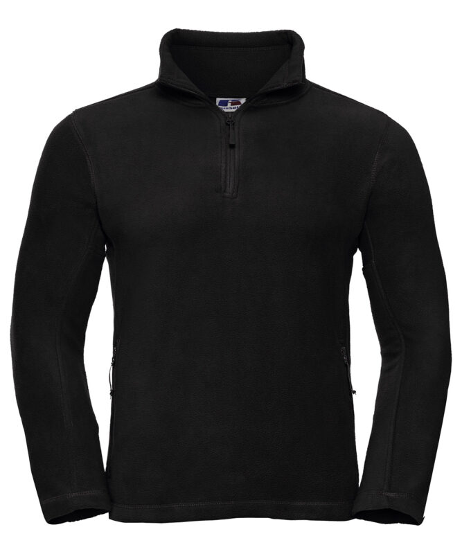 The compact fleece material, the smooth surface and the panelled construction allow for excellent fit and a more modern look than fleeces generally do. Cadet collar. 1/4 zip. Side pockets with reversed zips and inner mesh lining. Cord pulls on all zips. Bungee cord in hem.